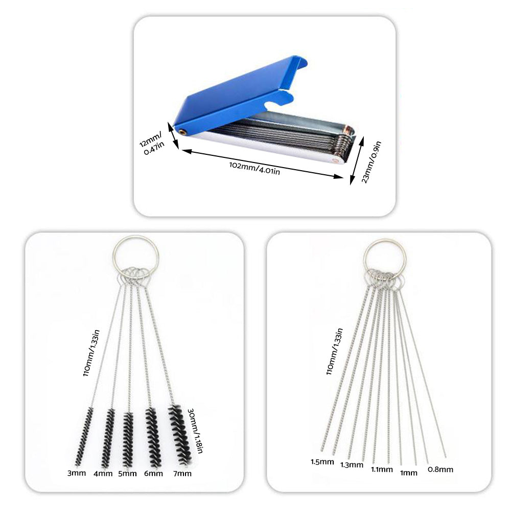 1. CLEANING NEEDLES AND BRUSHES: Perfect for clearing out blockages or obstructions in the narrow passage of auto motorcycle carburetor. Comes with a detachable key ring for convenient hanging and storage.